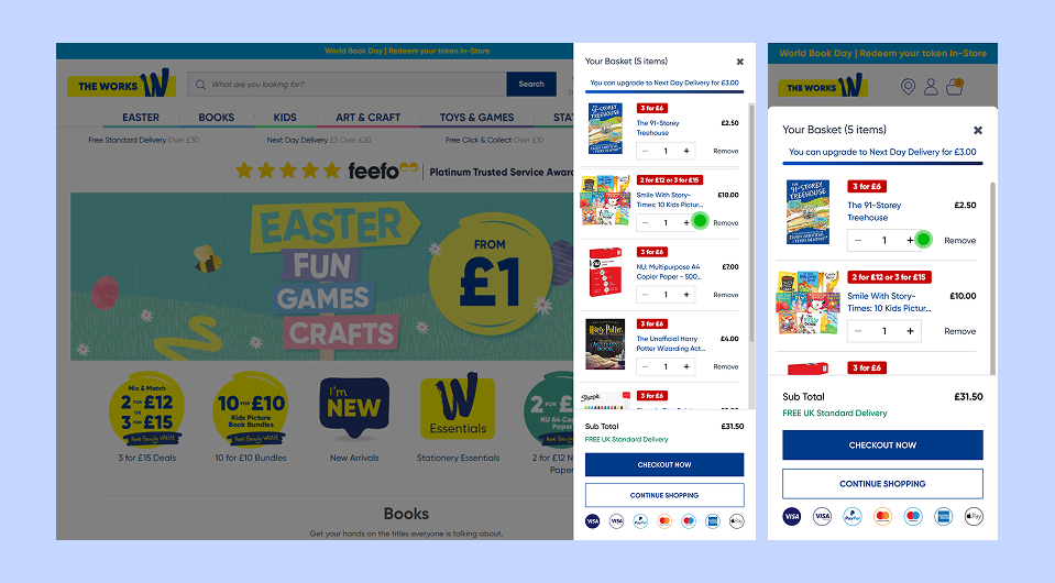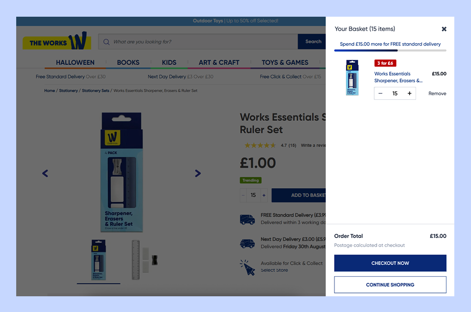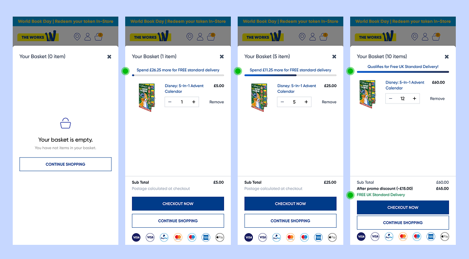 Add a few items to your basket on The Works website and try it out here